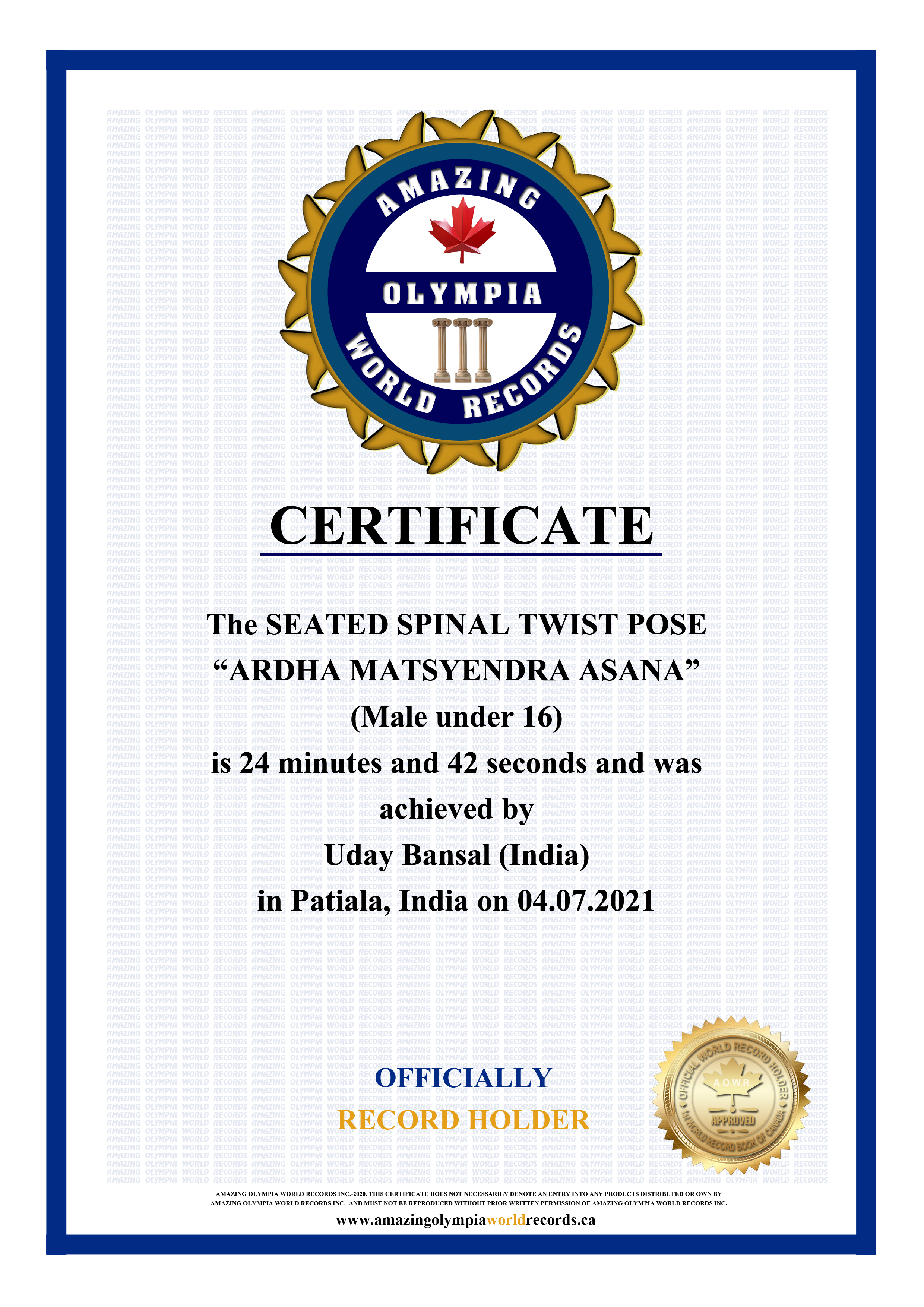 3. Record Title: Longest time to hold the HALASANA (male age under-16)