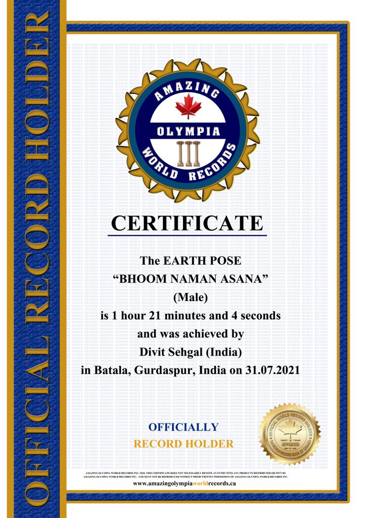 1. Record Title: Longest time to hold the HALASANA (Male)